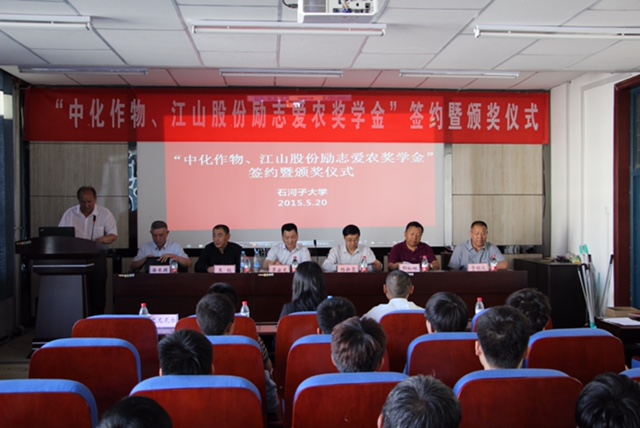 5月20日,由南通江山農(nóng)藥化工股份有限公司與中化作物保護(hù)品有限公司聯(lián)合捐助的“中化作物、江山股份勵志愛農(nóng)獎學(xué)金”簽約暨首次頒獎儀式在石河子大學(xué)農(nóng)學(xué)院隆重舉行。公司黨委副書記茅云龍、中化作物副總經(jīng)理王權(quán)、石河子大學(xué)校長助理?xiàng)钚氯?、農(nóng)學(xué)院黨委副書記艾尼瓦爾等校院領(lǐng)導(dǎo)以及校輔導(dǎo)員、學(xué)生代表參加了簽約及頒獎儀式。