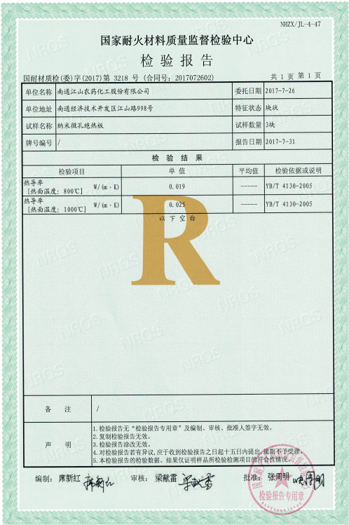 國家耐火材料質(zhì)量監(jiān)督檢驗中心檢測報告