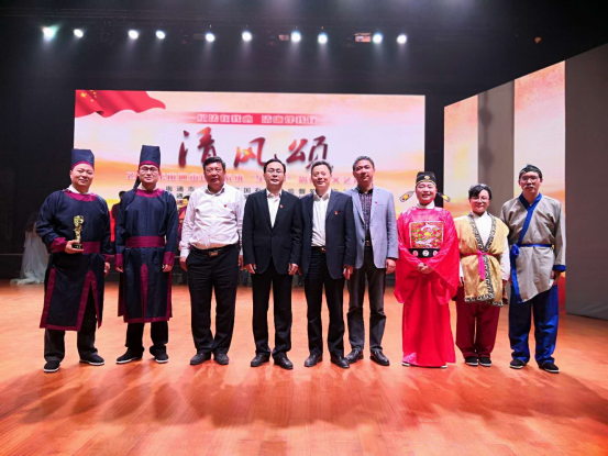 南通產(chǎn)業(yè)技術(shù)研究院有限公司選送的小品《審舅舅》以古代縣官面對(duì)情與法的沖突如何進(jìn)行抉擇為背景展開故事,以輕松詼諧的表演講述法不容情的道理,寓意深刻,讓現(xiàn)場(chǎng)觀眾在歡聲笑語(yǔ)中領(lǐng)會(huì)為官一任必須忠誠(chéng)、干凈、擔(dān)當(dāng),獲得陣陣喝彩。