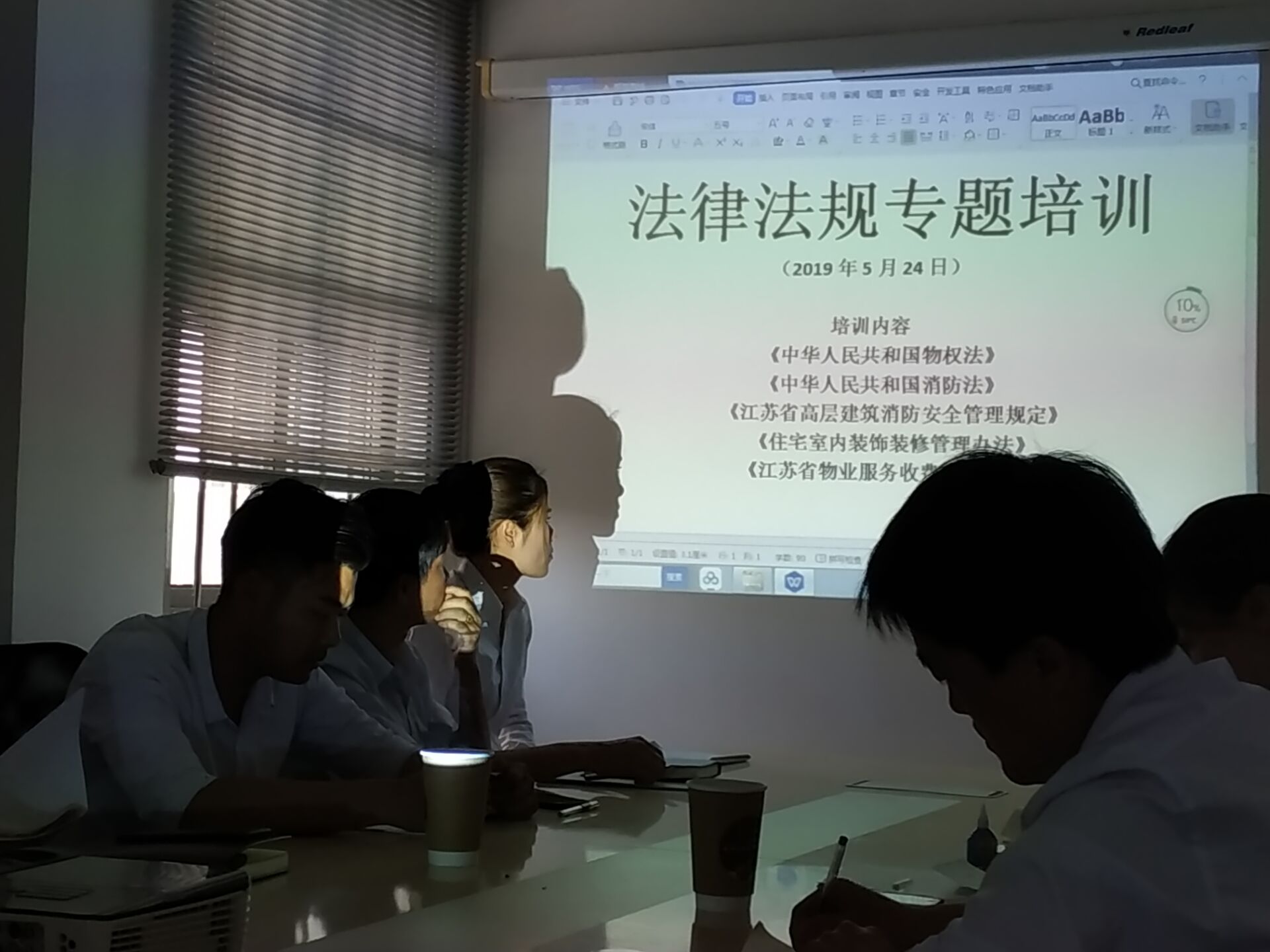 本次培訓(xùn)的內(nèi)容主要有:《中華人民共和國物權(quán)法》、《中華人民共和國消防法》、《江蘇省高層建筑消防安全管理規(guī)定》 、 《住宅室內(nèi)裝飾裝修管理辦法》 、 《江蘇省物業(yè)服務(wù)收費(fèi)管理辦法》等五部法律法規(guī)。 培訓(xùn)結(jié)束后,結(jié)合管理項(xiàng)目及崗位的實(shí)際情況,對(duì)全體物業(yè)管理人員進(jìn)行了法律法規(guī)基本知識(shí)技能的現(xiàn)場的考試,使大家在日后的工作中能更好的服務(wù)業(yè)主客戶。 |