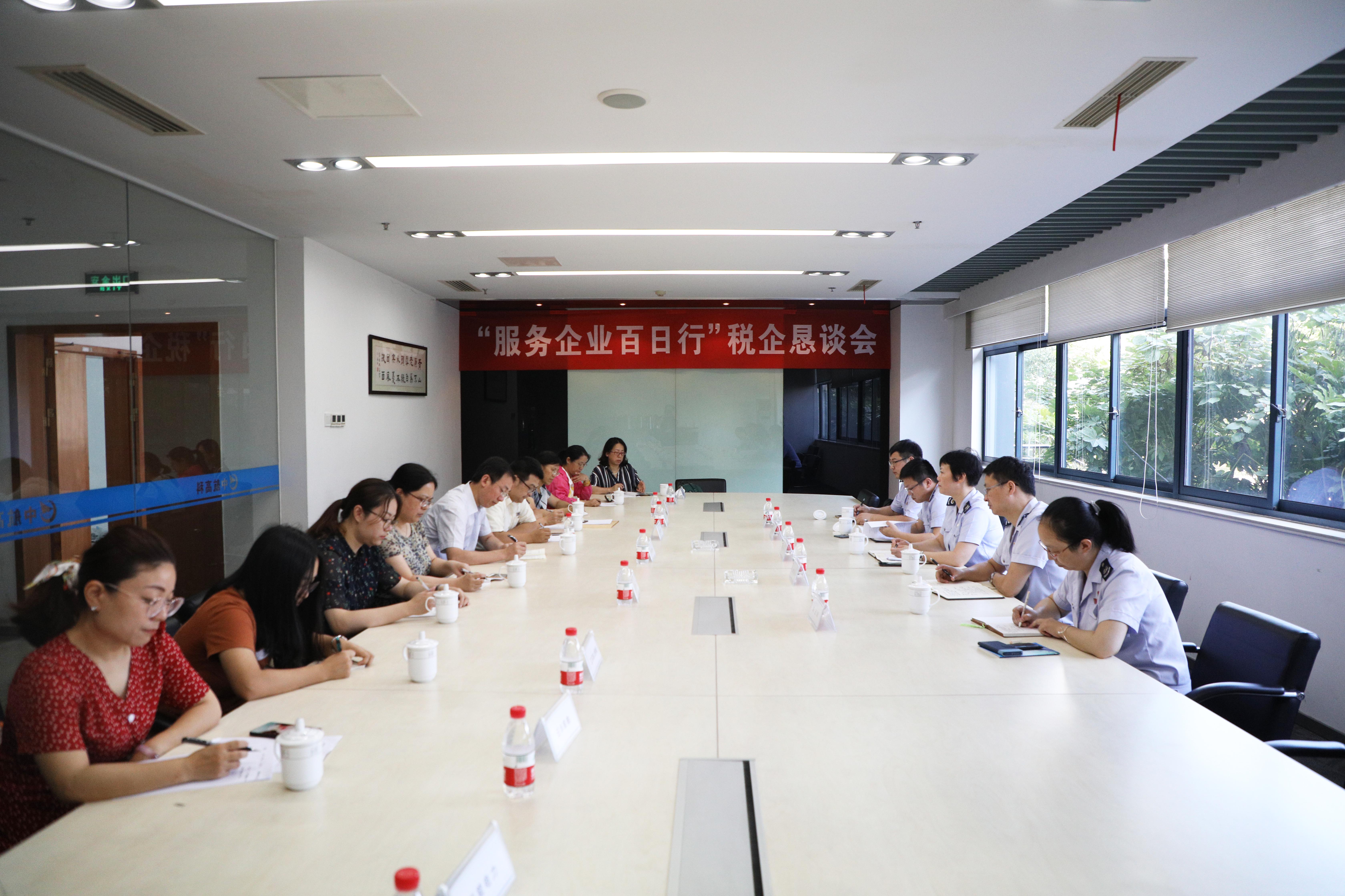 8月2日,南通稅務(wù)局第一分局局長(zhǎng)劉萍,副局長(zhǎng)唐新華、蔡威一行五人來(lái)中航航空高科技股份有限公司走訪,與中航高科、大地電氣等十家單位的財(cái)務(wù)工作者圍繞減稅、降費(fèi)這一政策在總部一樓會(huì)議室召開(kāi)稅企懇談會(huì)。