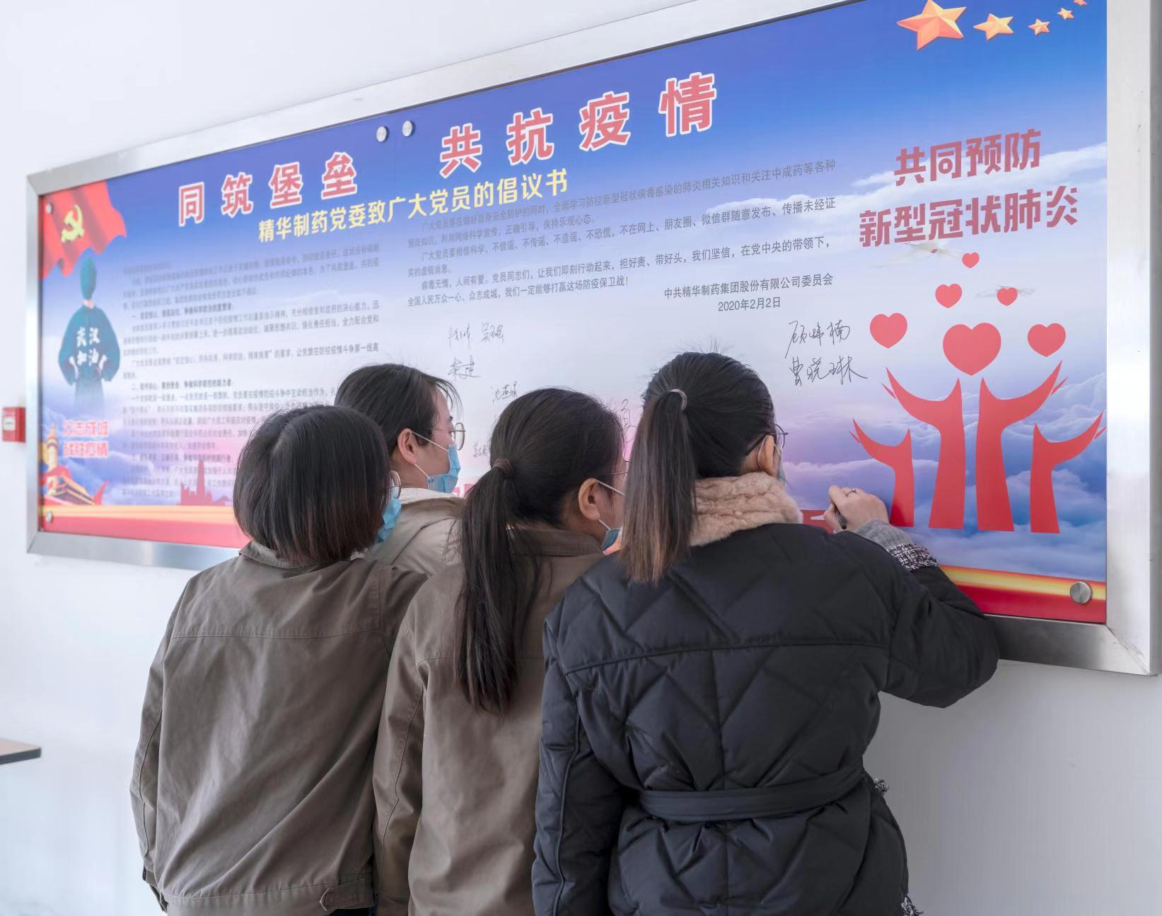 精華制藥黨委發(fā)出倡議書《同筑堡壘,共抗疫情》,倡議黨員同志擔(dān)好責(zé),帶好頭,萬眾一心,眾志成城,以高度的思想覺悟和政治站位爭(zhēng)做科學(xué)防控疫情的宣貫者、助力者和踐行者。黨委領(lǐng)導(dǎo)高度重視疫情防控工作,職責(zé)分工明確,制度規(guī)范到位,行動(dòng)快速高效,一把手親自指揮、親自部署,各級(jí)黨員干部各級(jí)領(lǐng)導(dǎo)帶頭值班,沖在疫情防控第一線,組織黨員始終堅(jiān)守崗位,守護(hù)群眾生命安全和身體健康,以實(shí)際行動(dòng)踐行初心使命。除了做好自身防護(hù)工作和日常工作外,黨員同志們還紛紛要求主動(dòng)值班,堅(jiān)守崗位。黨員帶頭到生產(chǎn)車間一線參加正柴胡飲顆粒的包裝生產(chǎn),集團(tuán)公司科室全體人員也主動(dòng)加入到包裝正柴胡飲顆粒的工作中去。 為保障職工安全健康,精華制藥防控領(lǐng)導(dǎo)小組召開專題會(huì)議,制定防控工作方案,通過微信群、電話等方式部署各項(xiàng)疫情防控工作。組織各職能部門、分公司、子公司負(fù)責(zé)人對(duì)單位員工情況進(jìn)行摸排調(diào)查。凡是有疫情較重地居住史或旅行史的人員,凡是與疫情較重地外來人員有密切接觸史的人員,凡是與疑似、確診病人有接觸的人員,凡是出現(xiàn)發(fā)燒、干咳等異常情況的人員,立即上報(bào)并自我隔離觀察。堅(jiān)決杜絕疫情的傳入與傳播,努力踐行一個(gè)國有企業(yè)的社會(huì)責(zé)任。