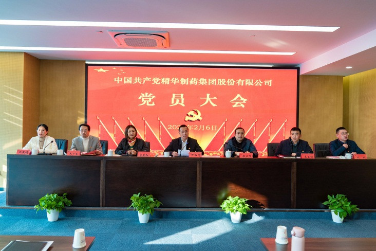 2021年2月6日下午,經(jīng)產(chǎn)控集團黨委批準,精華制藥集團成功召開了黨員大會暨黨委、紀委換屆選舉大會。 會上,集團董事長尹紅宇代表上一屆黨委作了題為《凝心聚力繪藍圖 砥礪奮進譜新章》的工作報告。報告回顧總結(jié)了近年來的經(jīng)營穩(wěn)發(fā)展、黨建有作為,在發(fā)展質(zhì)態(tài)、經(jīng)營管理、改革創(chuàng)新,產(chǎn)品研發(fā)、群團工作等方面所取得的顯著成績。他表示,面對2020外部政策環(huán)境激變以及新冠疫情帶來的影響,集團黨委上下凝心聚力、攜手共進,在逆流中乘風(fēng)破浪勇奪佳績,這些都歸集于始終堅持“五個不動搖”的經(jīng)驗總結(jié)。他指出在今后的五年發(fā)展中,將深化黨建引領(lǐng)、踐行發(fā)展新任務(wù),從政治建設(shè)、思想建設(shè)、隊伍建設(shè)、組織建設(shè)、文化建設(shè)等五大方面進一步加強黨對企業(yè)的引領(lǐng)作用;進一步體現(xiàn)黨對企業(yè)治理的指導(dǎo)作用;進一步發(fā)揮黨組織的“把方向、管大局、保落實”核心作用。
