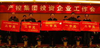 會議表彰了2010年 度目標任務考核先進單位及安全生產(chǎn)先進個人,陳照東董事長希望各投資企業(yè)以先進為榜樣,立足新起點,實現(xiàn)新突破,在新的一年爭先創(chuàng)優(yōu)、勇攀新高。為早日實現(xiàn)集團銷售總額過百億及產(chǎn)業(yè)現(xiàn)代化建設爭做新貢獻。會上,部分企業(yè)黨組織遞交了黨風廉政建設目標管理責任書,控股企業(yè)和未屬地管理企業(yè)經(jīng)營者遞交了安全生 產(chǎn)責任狀。