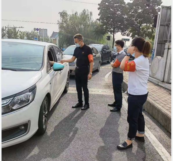 園區(qū)防疫是阻斷疫情傳播最基礎(chǔ)、最關(guān)鍵的環(huán)節(jié)。由于入駐企業(yè)較多,當(dāng)前智匯產(chǎn)業(yè)園門崗排查任務(wù)重,特別是早高峰時段,車輛人員集中,導(dǎo)致通行不暢。為積極投身園區(qū)疫情防控工作,國盛黨支部主動聯(lián)系園區(qū),組織黨員先鋒隊和青年突擊隊分別于8月26日和27日連續(xù)兩天開展防疫志愿活動。早上八點,黨員和青年志愿者們佩戴紅袖章,為進(jìn)入園區(qū)的人員測量體溫并檢查行程信息、講解防疫知識,讓群眾從思想上重視、行動上配合,牢記勤洗手、戴口罩、常消毒的防疫要點。