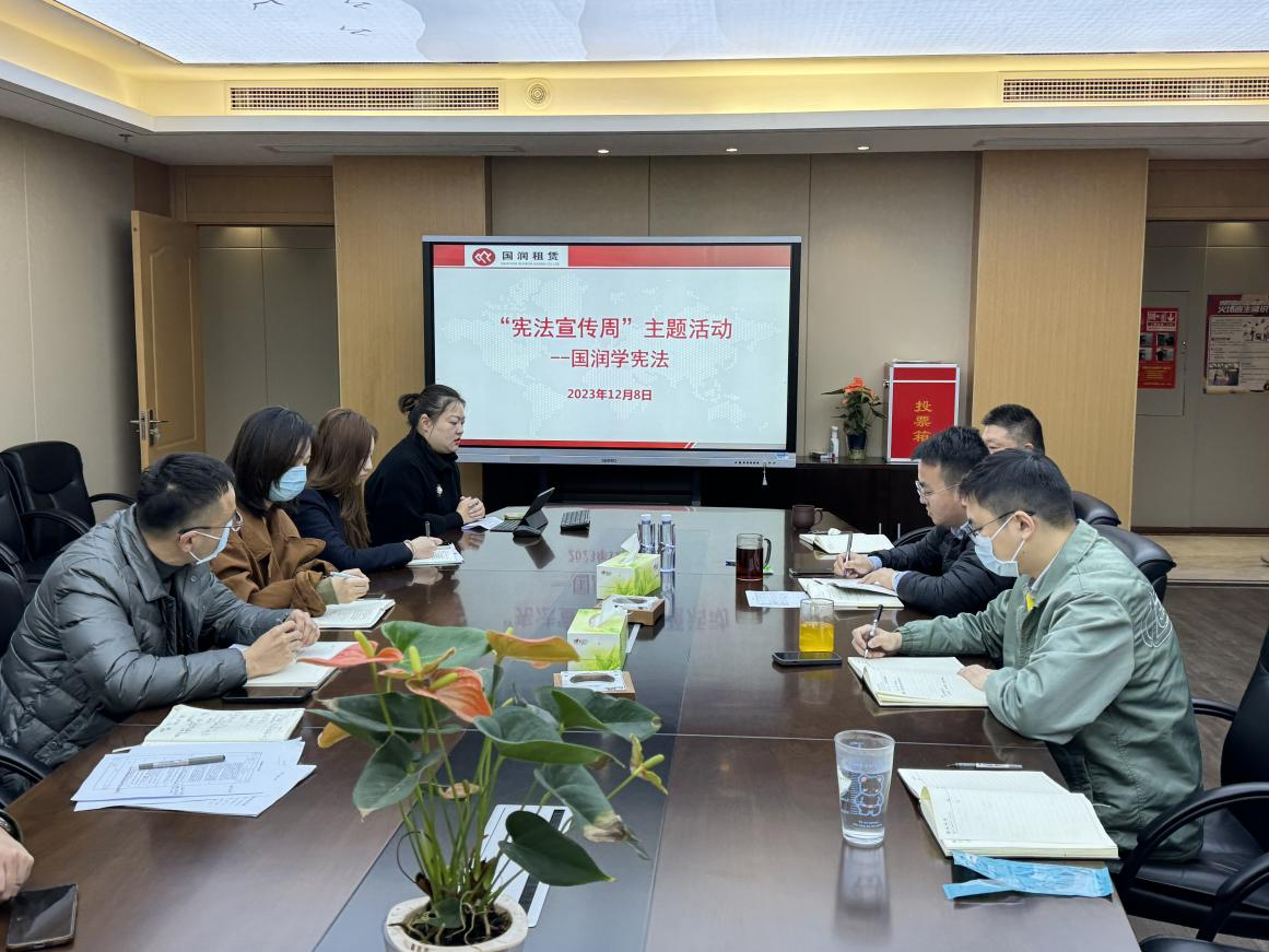 12月8日上午,在第十個國家憲法日來臨之際,南通國潤融資租賃有限公司圍繞“大力弘揚憲法精神,建設(shè)社會主義法治文化”主題,組織開展“憲法宣傳周——國潤學(xué)憲法”專題活動。為作好本次法律宣傳活動,公司領(lǐng)導(dǎo)高度重視,組織召開專題會議,向全體員工宣導(dǎo)中央宣傳部、司法部、全國普法辦聯(lián)合印發(fā)的《2023年全國“憲法宣傳周”工作方案》,同時對如何開展好此次活動進(jìn)行了部署。公司還邀請法律顧問單位——北京盈科(南通)律師事務(wù)所的繆姝姝律師,就憲法相關(guān)知識作了專題講座,公司全體員工參會。